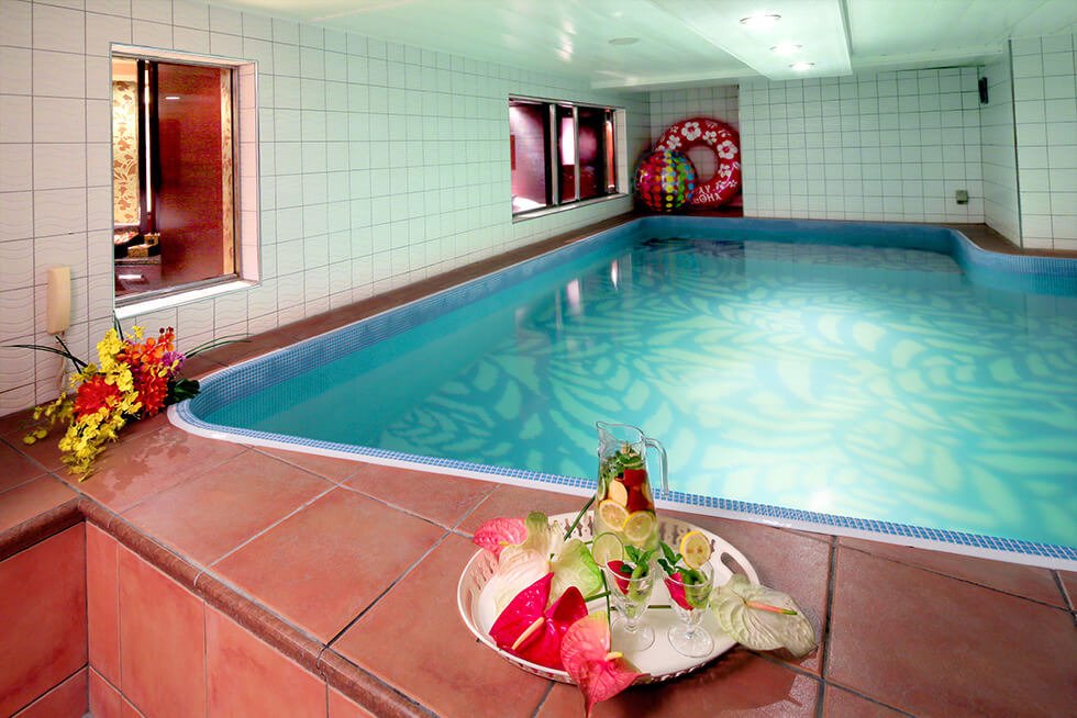 Dランク ラグジュアリー 602 リビングベッドルーム ベッドルーム ベッド・ソファ ブロアバス 洗面化粧台 アメニティ アメニティ ティーセット お部屋の設備 プール ブロアバス 22インチ浴室TV 水中照明 空気清浄機 持込用冷蔵庫 電子レンジ ウォシュレット ドライヤー ティーセット